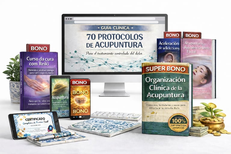 Al adquirir 70 PROTOCOLOS DE ACUPUNTURA hoy, recibirás totalmente GRATIS estos 5 regalos exclusivos.